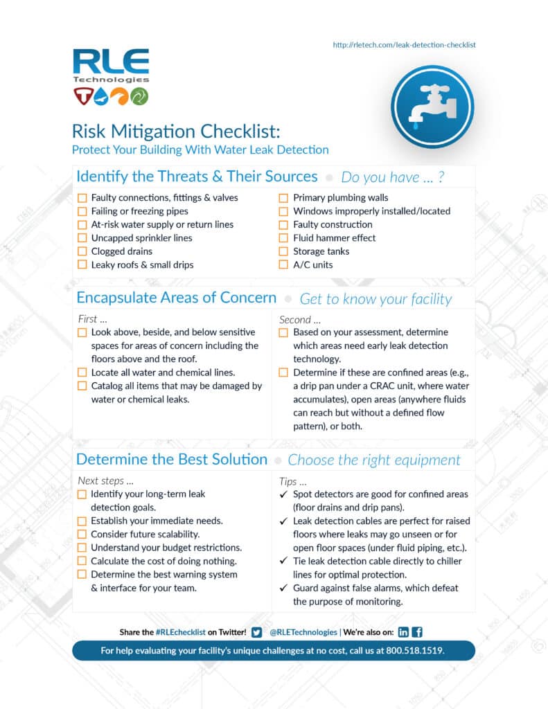 To continue the simile, sometimes, even with the instruction booklet, we need to consult a tax professional. The same goes for leak detection. We’re pretty proud of the checklist, but that doesn’t mean that we expect you to figure out everything on your own. RLE Technologies is happy to provide you with a free consultation on evaluating the unique monitoring needs of your facility. Let us know how we can help.